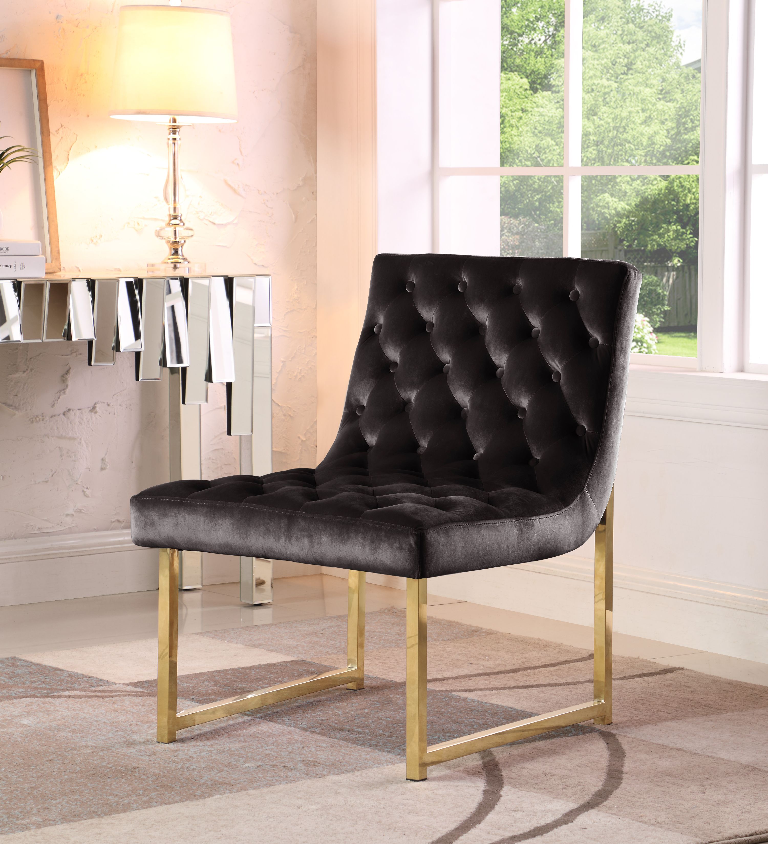 Black Velvet Tufted Accent Chair. Browse stylish lounge chairs, dining room chairs, outdoor seating and more. | cavalli acrylic legs velvet accent chair with diamond tufting in 2 colours. Lush and refined, beautiful and bold. Great savings & free delivery / collection on many items.