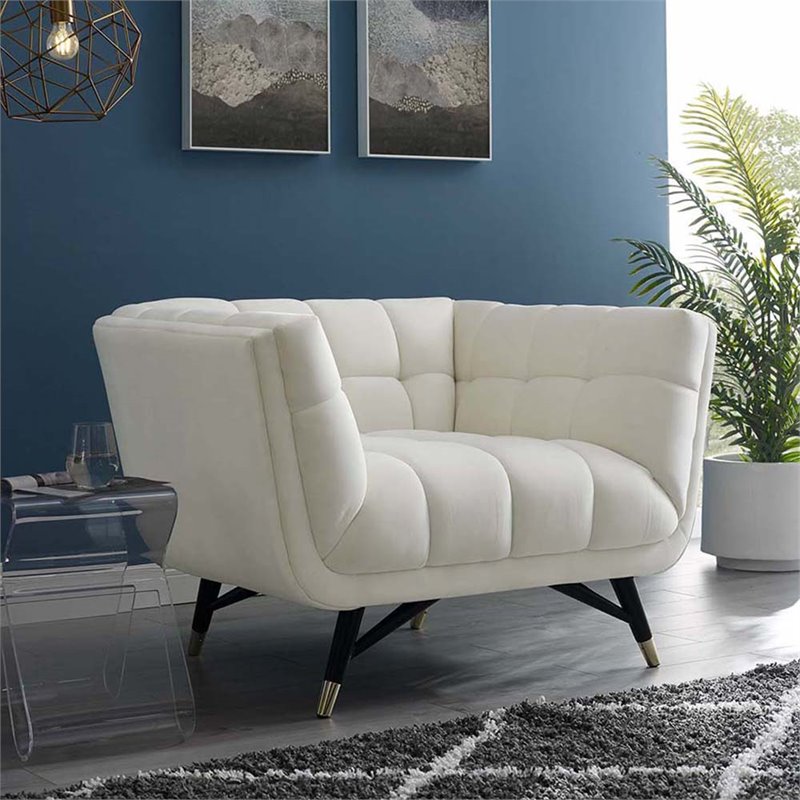 The fabulous design of the seashell edges, vertical tufting, and gold legs will dazzle your guests in any room setting. Withdraw from all distractions into this accent chair as the center of attention.
