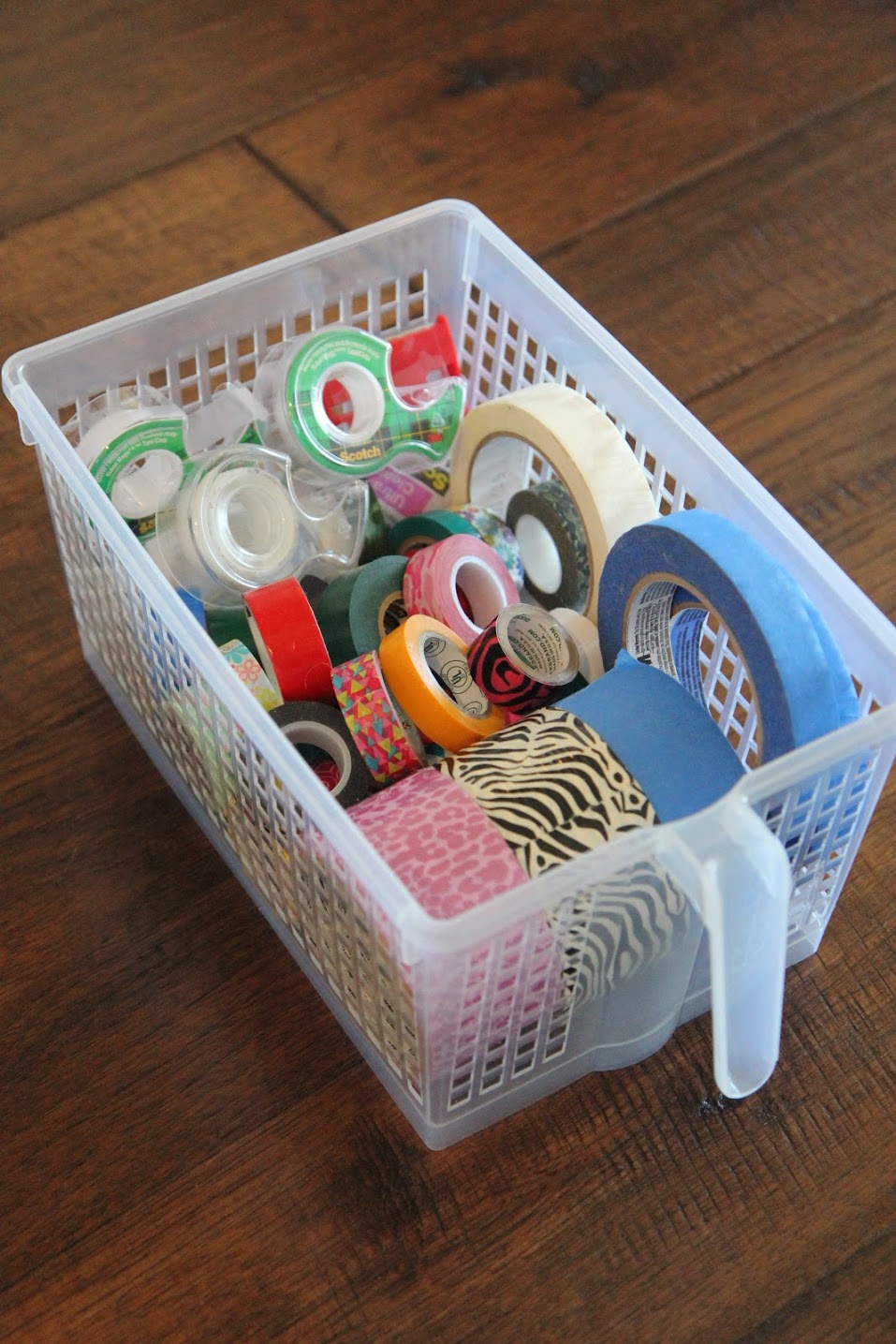 I would love to say that it's meticulously organized but in reality it's an old laundry basket that i toss everything artsy into.