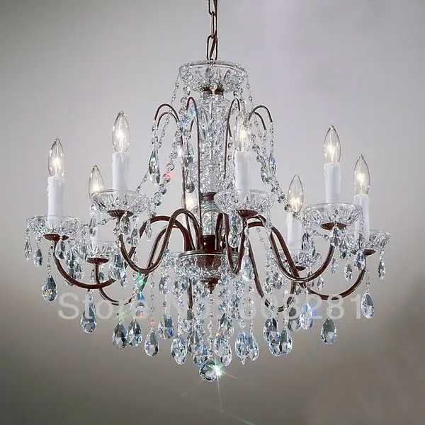 Country 6 light chandelier in oil rubbed bronze finish with crystals.