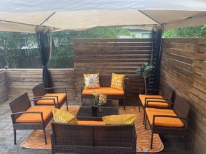 Spring is good so you can enjoy it immediately. Patio furniture store in austin tx.