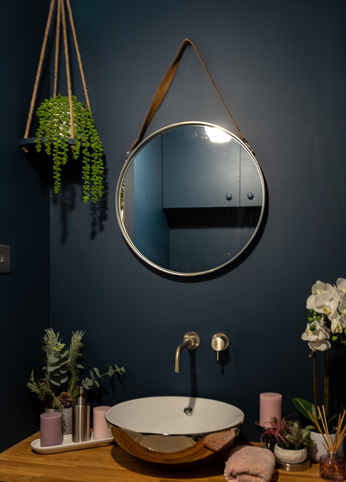 The powder room is the bathroom where you can experiment, be bold, go dark and moody, do some fun wallpaper, a fabulous vessel sink, get a little crazy if you want.