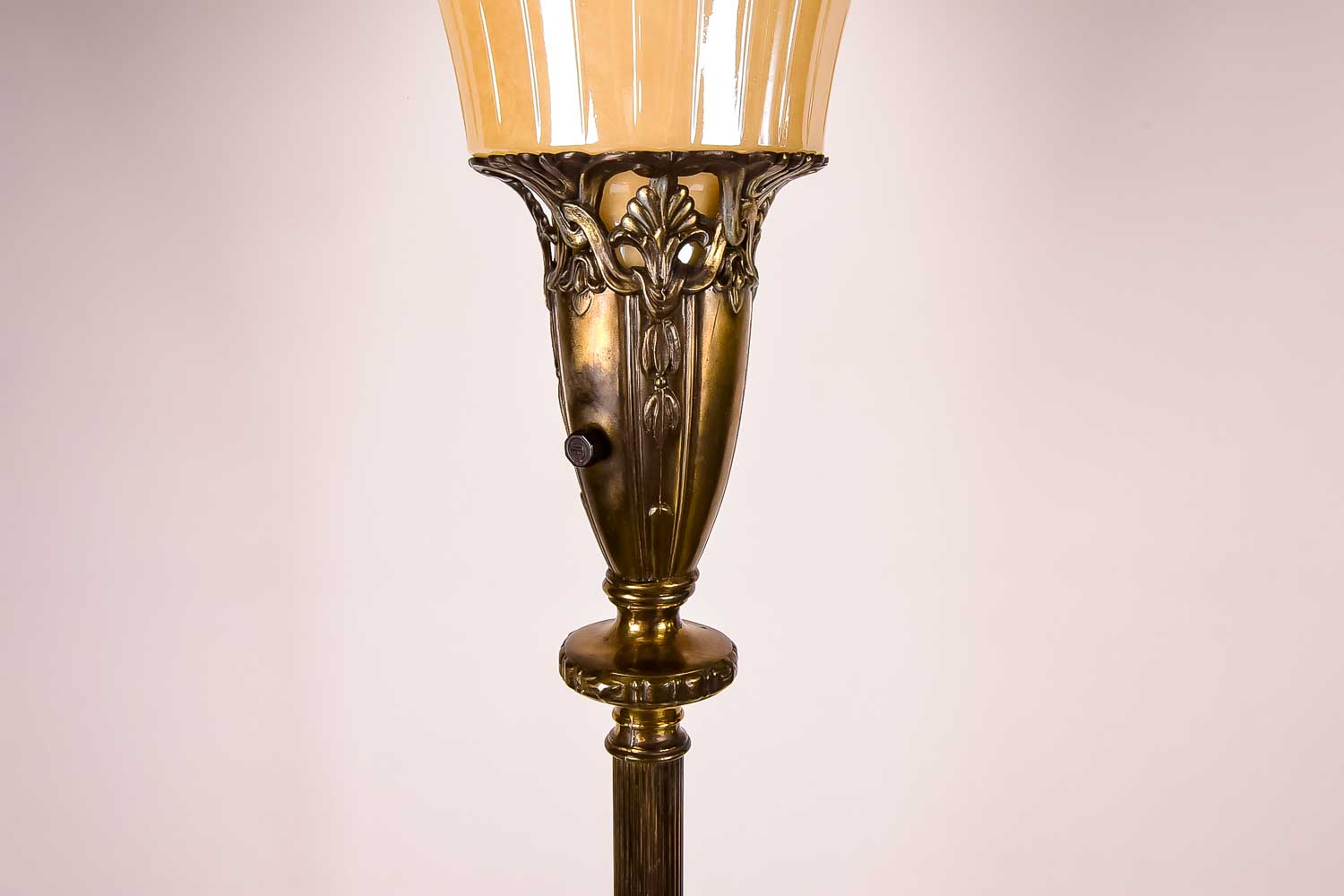 Antique vintage torch torchiere floor lamp art nouveau reading light opt for this antique styled torch lamp for your floor that sports just the most fitting and ideal art nouveau design and the golden finish of the base that compliments perfectly with the warm tone of the shade and its appealing shape.